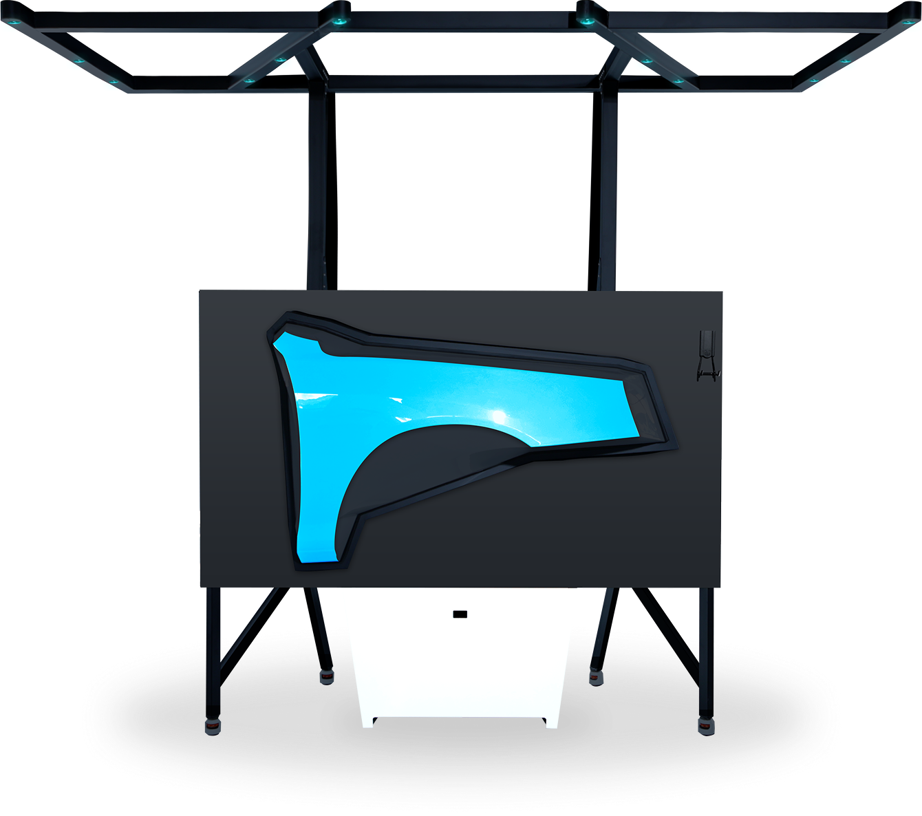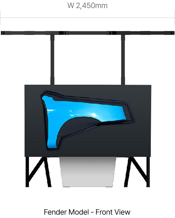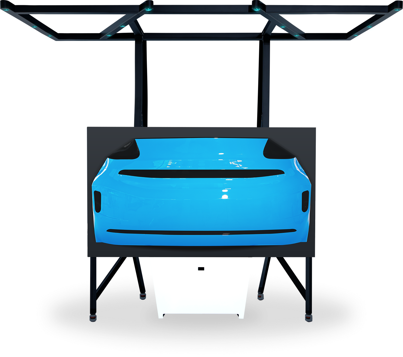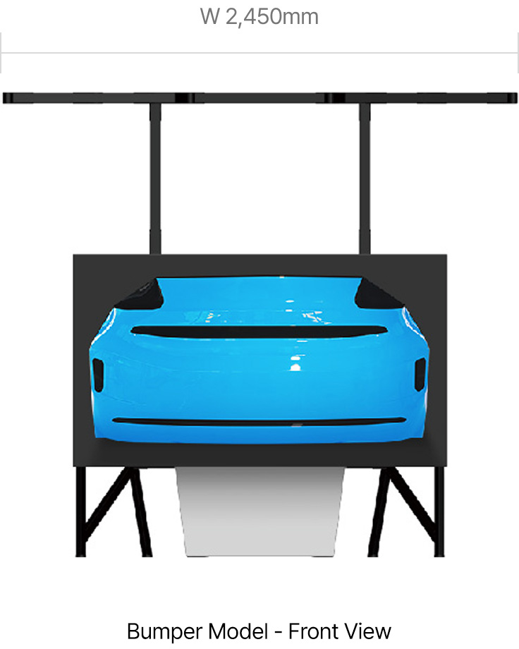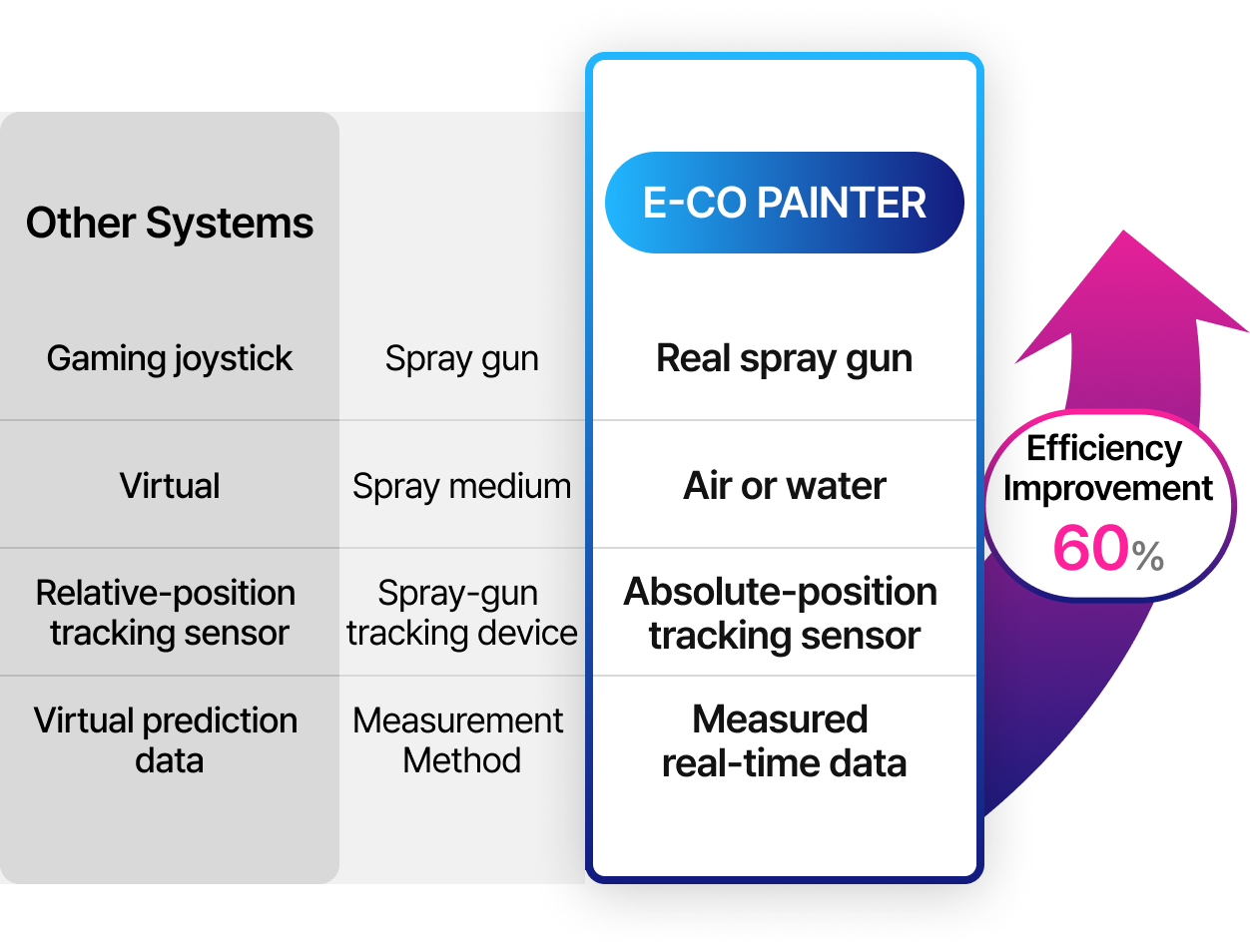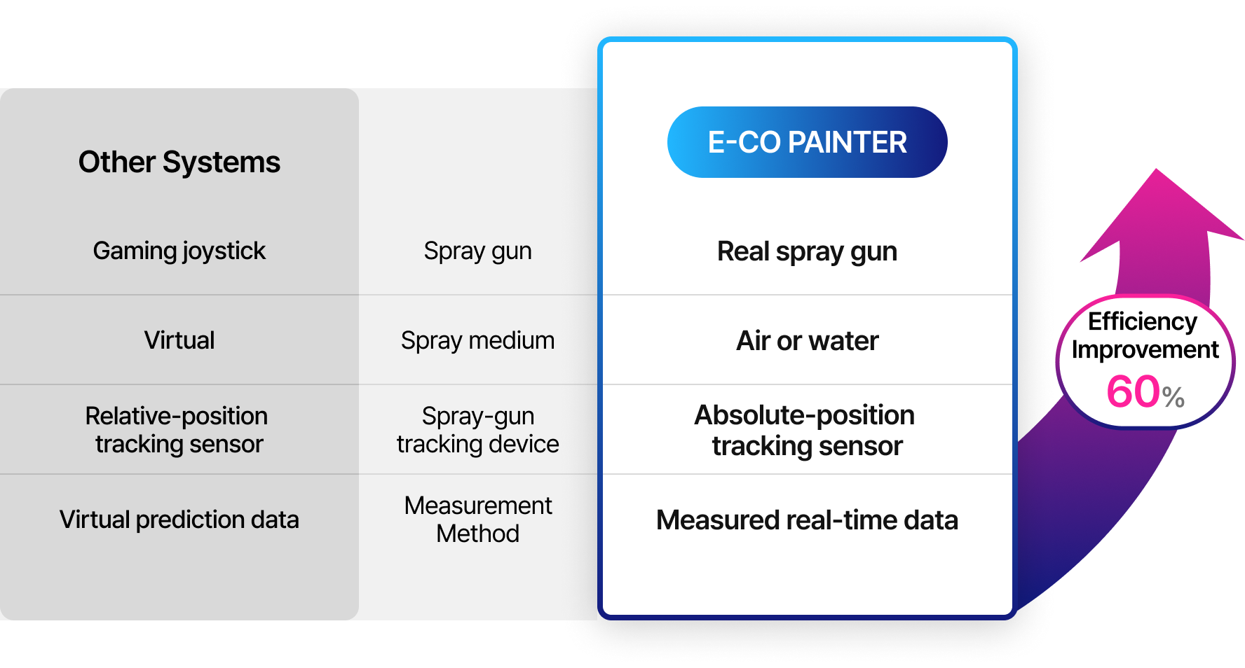 an eco-friendly painting simulator that overcomes the limitations of traditional painting training using next-generation extended reality (XR) technology. It replicates an on-site work environment by utilizing vehicle-equivalent panels and a real spray gun, enabling safe training with only air or water, no paint required.